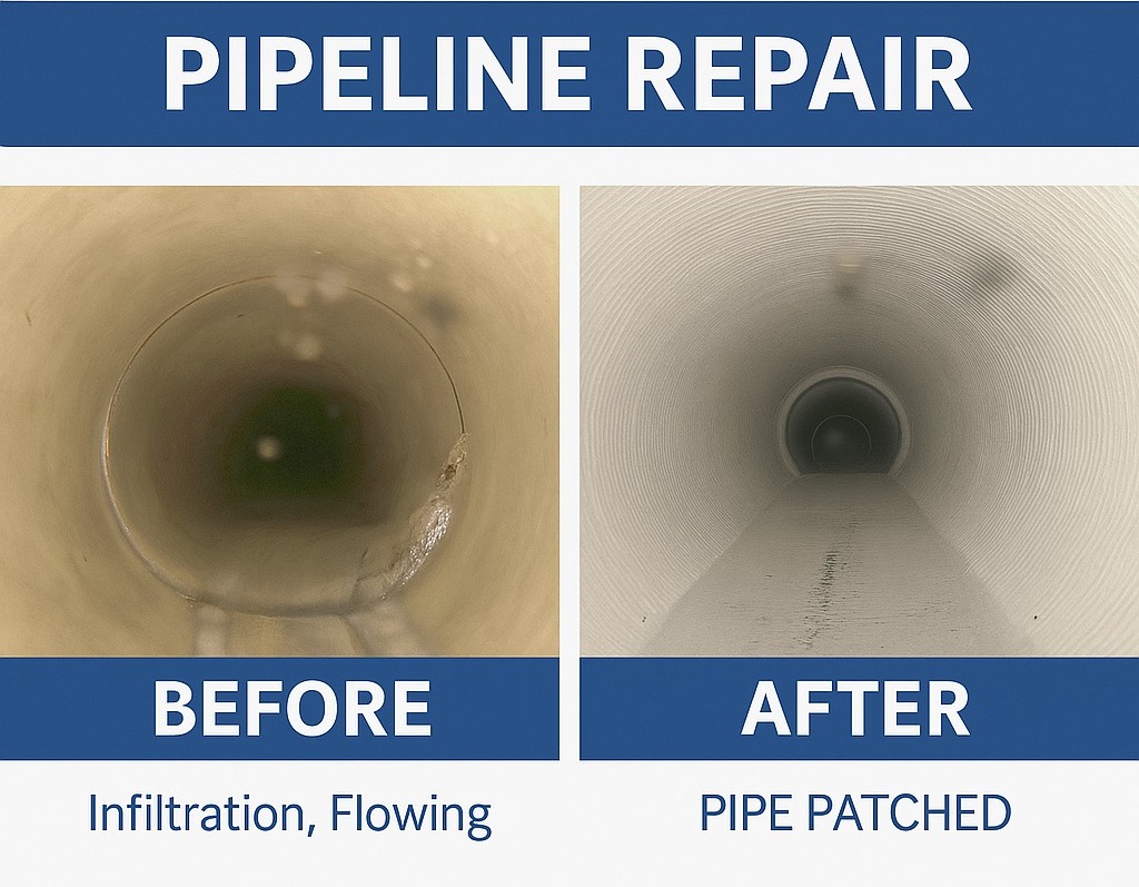 A drain patch repair or spot repair is a small section of liner that targets specific defects such as a root damaged joint..